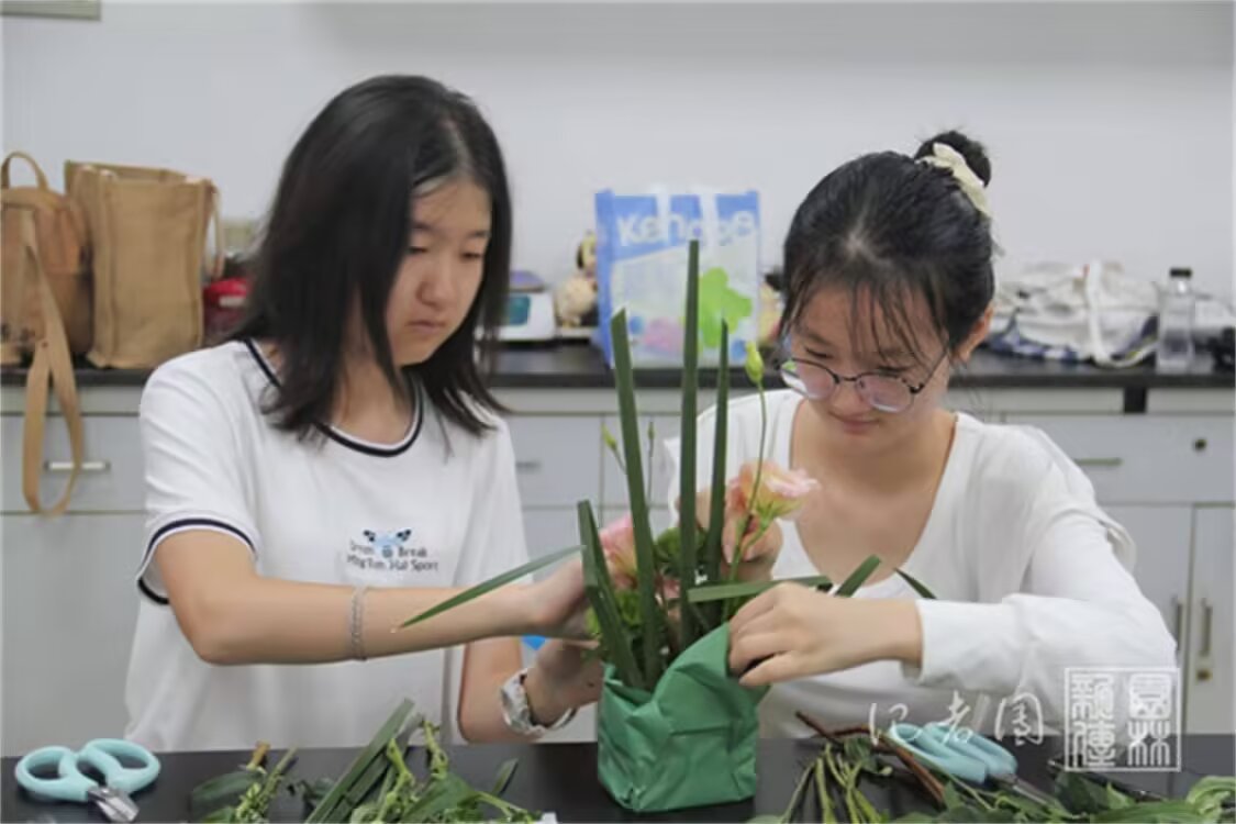 8月31日上午,花艺活动于园林北楼222室顺利举办。贝博ballbet官网教师王媛媛、张蔚向同学们介绍并区别了东西方分别的花艺特征并且拓展了花艺在生活中的运用场景。王媛媛给大家介绍了今天制作桌花所需的花艺材料,并从专业的角度向同学们介绍了插花技巧与操作方式。此次体验以水烛叶作为主要的架构材料、洋桔梗作为主花,需分组错落入盆,呈三角结构,才会使作品空间感最佳。体验环节,同学们以寝室为单位,积极参与花艺创作。大家还在模范示例的基础上进行了额外的自由创作,创造出了各式各样的桌花小作品。