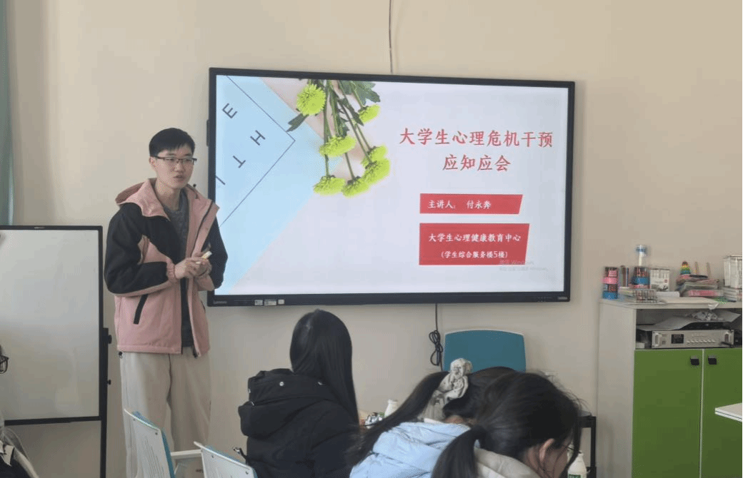 随后,付永奔老师着重介绍了一系列危机干预技巧与方法,教会心理委员如何与有困难的同学建立信任沟通,传授对有消极想法的同学进行心理疏导与情感支持的方法与途径。