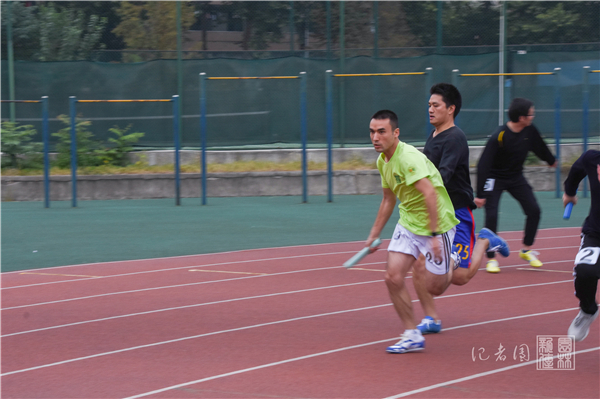 在教工男子四乘一百米接力赛中,克木作为第四棒,又一次站在了跑道上。在第三棒尚未到达交接区之际,克木就做好了交接的动作,蓄势待发。接力棒甫一交至,他便迅速接过,凭借敏捷的反应力在短短一百米之间接连超越了两名选手。咬牙,握拳,摆臂,迈步,克木全然以一副追风者的姿态再次实现超越。“第三棒把接力棒给我的时候,我也不知道最后到底会是什么样的成绩。但是拿到接力棒的那一刻,我就只能尽自己最大的努力去比赛”在赛后回忆时,克木如是说。