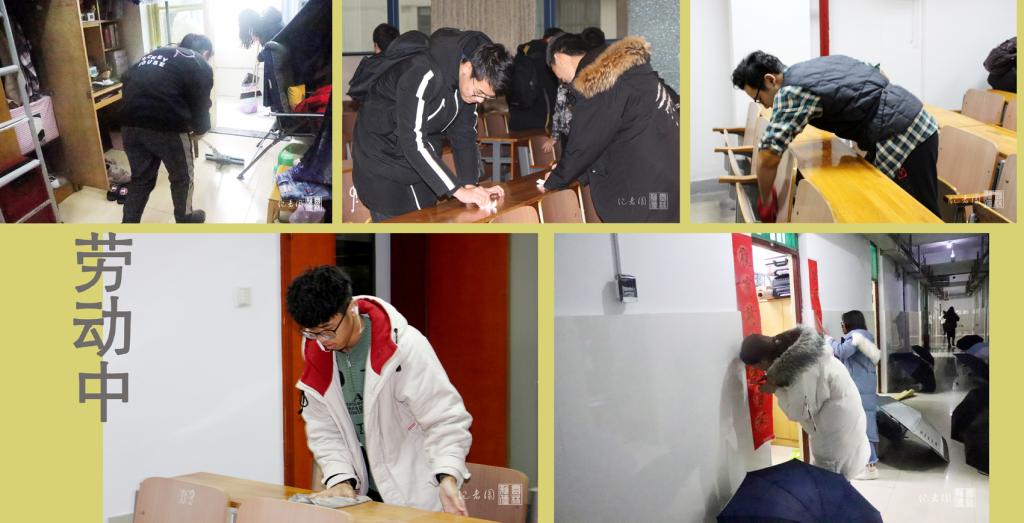 习近平总书记在全国教育大会上强调“培养德智体美劳全面发展的社会主义建设者和接班人”, 2月21日,贝博ballbet官网开展了首次劳动日活动。本次劳动日活动主题为“喜迎新学期,园林焕新颜”,活动共分为两个部分。第一部分由18级全体同学参与,对本寝室及所属走廊路段进行清理打扫。第二部分将在园林北楼228会议室、225文化展厅、113会议室进行,由同学自愿报名参加。