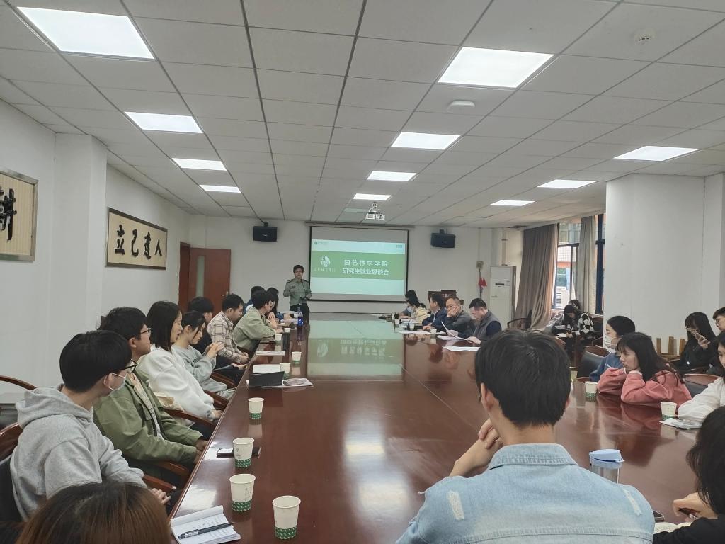 5.11日上午9点半,园林院研究生就业恳谈会在园林北楼302举行,院党委书记张宏荣、院长程运江、副书记蔡江、罗正荣教授、刘永忠教授、柴利军教授、辅导员肖晗及20余名2022届毕业研究生参加了会议。