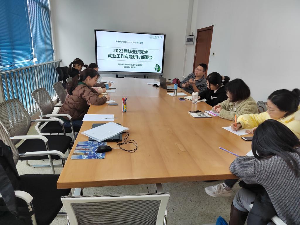 2月23日中午,学院研究生会职业发展中心围绕毕业研究生就业工作,组织召开专题研讨会,学院辅导员肖晗老师主持研讨会,职业发展中心全体干部参加。会议伊始,肖晗老师从目前园林院毕业研究生就业进展出发,围绕如何解决当前就业工作面临的困难和问题,就工作现状、工作难点及解决思路进行汇报与分享。