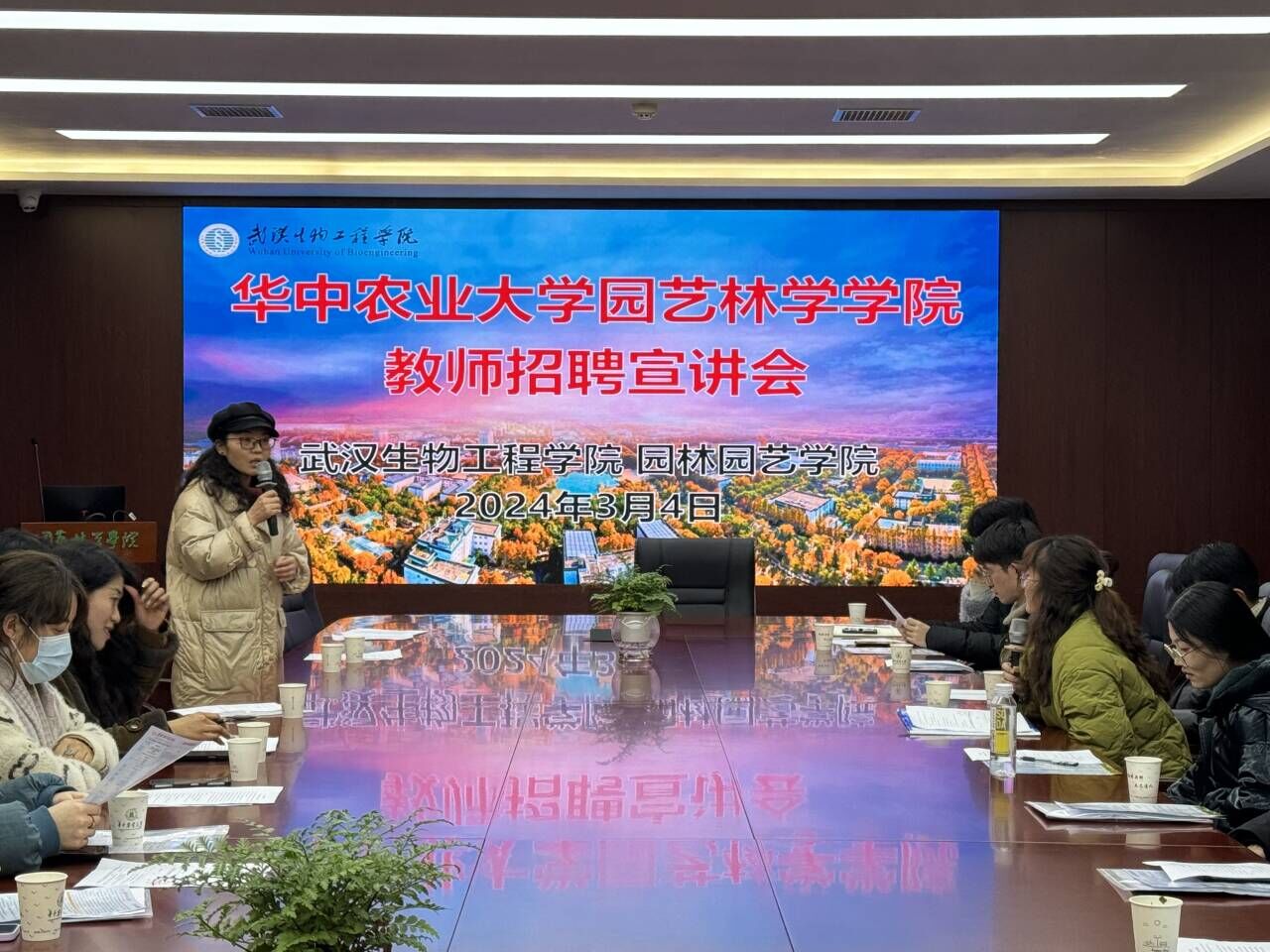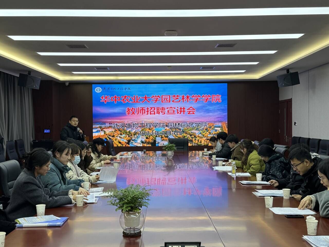 2024年3月4日下午,武汉生物工程学院园林园艺学院教师招聘宣讲会在艾弗森贝博ballbet官网北楼219会议室举行。武汉生物工程学院园林园艺学院副院长唐艳平、园林园艺学院党总支副书记张群慧、贝博ballbet官网研究生辅导员肖晗、孟悦及二十余名毕业年级博士、硕士生参加了宣讲会。