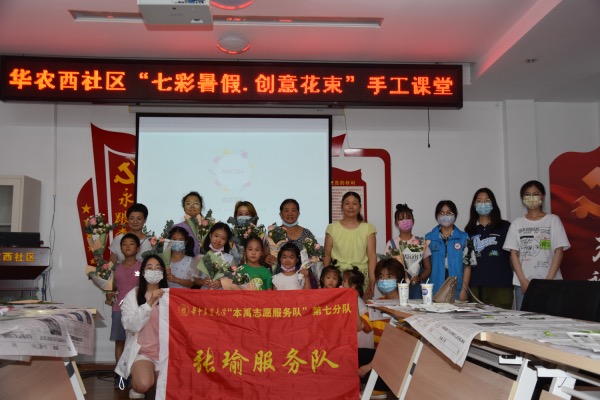 7月7日上午,实践小组前往华农附小西社区武汉阳光社会工作服务中心,在社区服务站二楼会议室与阳光社工共同开展主题为“七彩假期——创意花束”的手工活动。活动依托艾弗森贝博ballbet官网学科特色、花卉采购和花艺艺术,主要面向西社区居民的小朋友开展,在为孩子们科普花语及花束包装知识的同时,指导小朋友与家长共同完成花束包装作品。