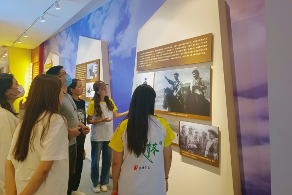 7月26日上午,经过与史馆工作人员的沟通,新疆拜城县老虎台乡民兵骑兵连博物馆对社会实践团临时开放。讲解员塔依尔·吾守尔带领大家走进连使馆,深情介绍道:“在祖国西北边陲巍巍天山脚下,活跃着一支全国唯一在编民兵骑兵连——拜城县老虎台乡民兵骑兵连。这支成立于1965年的民兵骑兵队伍,曾先后被国防部、解放军总谋部授予‘高原上的雄鹰’和‘全国民兵预备役工作先进单位’等荣誉称号。”展览馆的一幅幅照片、一件件文物,都见证了当年那段艰苦革命的峥嵘岁月。