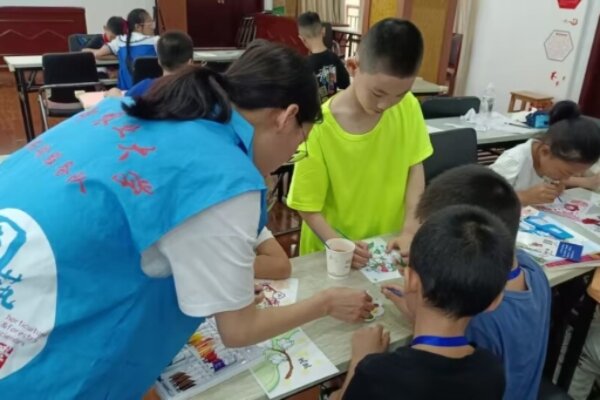 上午十一点半,此次活动落下帷幕。小朋友们开心地捧着自己的作品合影留念。参加本次活动的志愿者唐昕妍表示:“小朋友们的作品都各具特色,看着他们在绘画花朵欢声笑语的时候,作为志愿者感到非常地高兴,希望这次活动能为他们的暑假生活增添一抹亮色。”