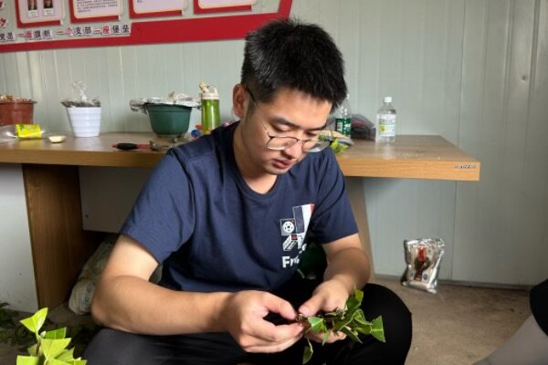下午,实践团队参与了春之染种植合作社与武汉市农科院合作的茶花扦插枝条制备工作。在这个过程中,团队的成员们认真学习,虚心请教,并在工作人员的指导下明白了修剪枝条的重点在于处理芽点。芽点主要位于新枝和老枝之间,并且相对于枝条其他部分更加隆起。芽点部位更容易生根,因此需要保留此部分以保证枝条生根存活。修剪时,他们斜切芽点并除去大部分叶子,只保留顶端裁剪过一半的叶片。处理好的枝条被捆扎成束后,斜切部分会浸泡在溶有生根粉的乙醇溶液中消毒,然后放置在阴凉处等待扦插。经过团队成员的努力,茶花扦插枝条的制备工作圆满结束,工作人员对他们的成果给予了赞赏。