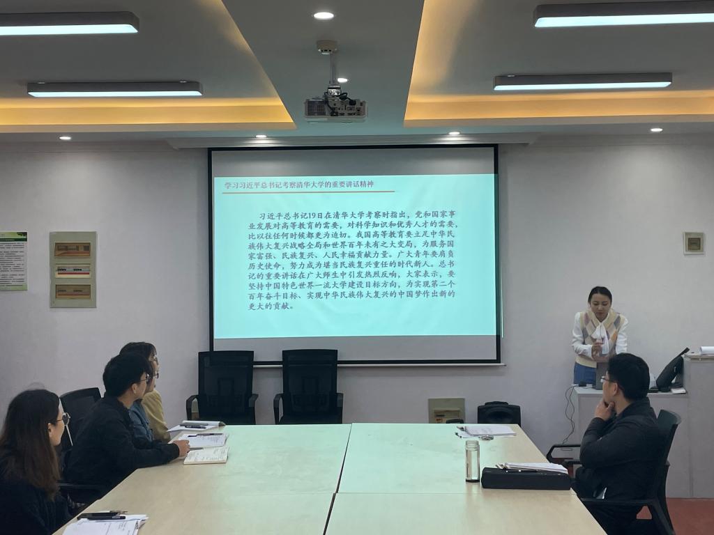 会议的最后,辅导员孟悦老师带领参会人员共同学习了习近平总书记考察清华大学的重要讲话精神。