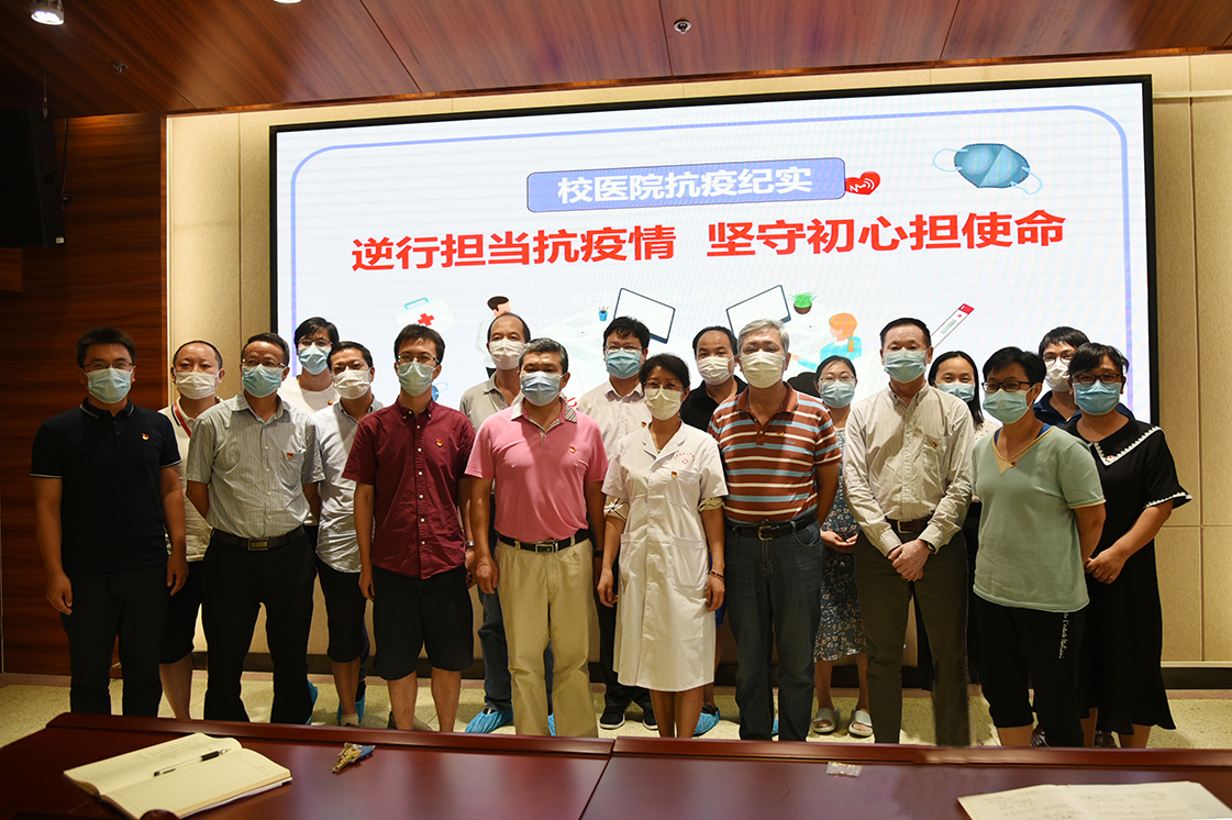 侯东彬回顾到,疫情发生后,学校坚持“预防为主、防控结合、积极应对、科学治疗”的基本原则,立即成立了包括“医疗救助组、院感控制组、防疫管理组、后勤保障组”在内的工作领导小组。校领导亲自指挥,落实防控工作抓实、抓细、抓到位。学校各单位以及海内外校友捐赠物资,为校医院的救助工作保驾护航,校医院加强一线医护人员专业培训和防疫知识健康宣教,保障医护人员安全。