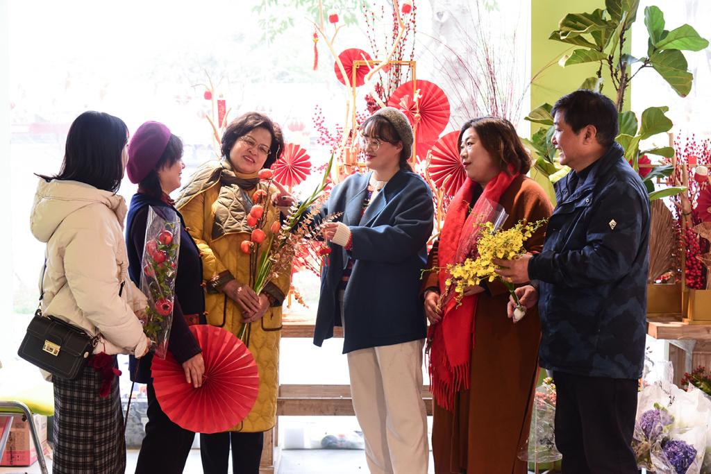 大寒篇“红红火火年宵花”活动现场设在武汉市解放公园第三届迎春花市的筹备现场。邀请了武汉市插花花艺协会理事冯莉、陈进、陈琼辉,协会专家顾问辛高炉,迎春花市策划苗淼与花友一起进行线下迎春花市活动,并在抖音平台直播。苗淼老师向花友们介绍了2022年武汉迎春花市的情况,花市将于1月22日正式开放,为广大爱花市民提供赏花、买花的平台。高辛炉老师为花友解答年宵花养护问题,指出“浇水需见干见湿,不干不浇,浇则浇透”。王媛媛老师和陈琼辉老师分享了年宵花的历史起源、概念与类型。活动下半场由花艺老师冯莉和陈进,为大家介绍今年年宵花的特色与趋势,并结合花文化,探讨了年宵插花常用的花材。