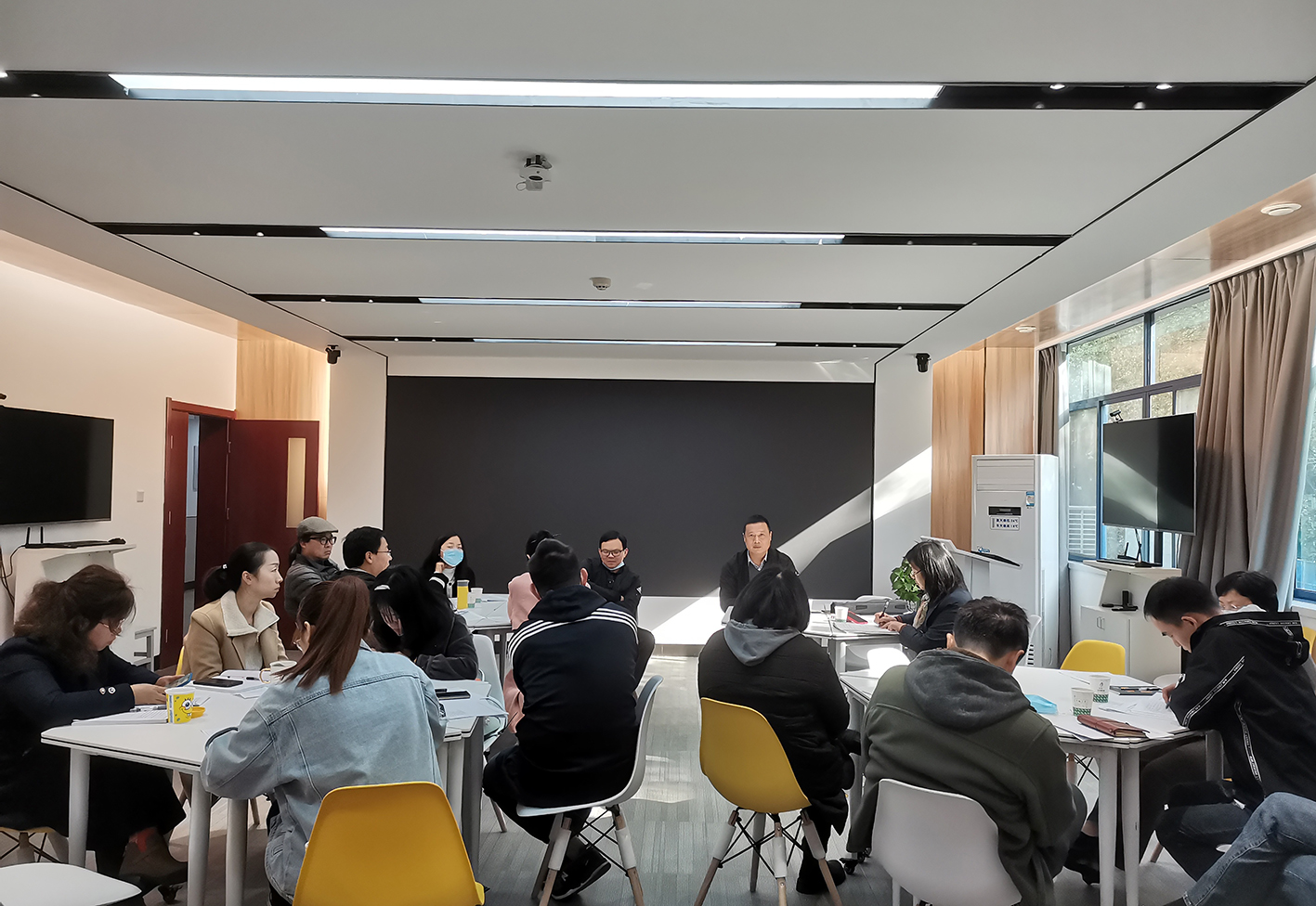 与会人员介绍了参赛经验和年度竞赛计划,就激发师生参赛积极性,扩大参赛规模和提高项目质量等方面展开激励讨论。孔秋生老师提出要提高学生团队的参赛质量,需要专业导师和产业导师紧密配合,培养学生团队的综合素质和参赛能力;肖晗老师建议研究生与本科生合作组队推进项目,鼓励现有的创业团队积极参加各类创新创业赛事。