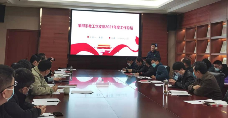 会议第三项,民主评议党员。在民主评议中,教工党员就上一年个人理论学习、个人工作、社会服务等进行总结。教工党员普遍认为2021年支部活动有活力、有特色、且多样,凸显果树系教工支部在教学科研及社会服务中的显著作用。罗正荣同志表示,他一直在致力于青年人才培养及产业服务,但是成效上还需要进一步提升,不断思考以求做到更好;李国怀同志表示,作为具有30多年党龄的党员科研工作者,要不断加强学习,跟紧时代发展趋势,不仅要思考教书育人服务产业,更要思考如何教书育人及做好产业服务。郭文武同志表示在做好个人科学研究的同时要有公益心,落实到个人科研基地管理,以彰显果树学科的风貌,另外要积极与产地建立联系,多思考如何做到产学研结合。博士后王霞同志表示作为青年科研工作者要加强独立进行科研工作的能力,尽早找准工作重点,积极向优秀前辈学习,提升工作能力。另外,党支部的每一位教工党员就个人在工作及理论学习等各方面的不足之处进行了自我批评。