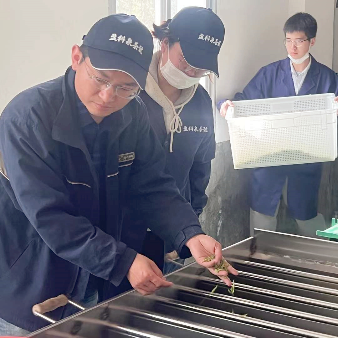中国农技协江西宜丰茶叶科技小院由贝博ballbet官网茶学系与江西盈科泉茶业有限公司共建,此次入驻团队由21级茶学硕士班隋梦圆、宁瑶瑶、江广贤和茶学1802班于昊男组成。两个月时间里,黄友谊教授带领团队成员重点推动江西盈科泉茶业有限公司春茶的提档升级。团队根据当地鲜叶的质量和特征,确定了黄金茶、松针绿茶、毛峰、红茶、珠兰花茶等茶产品的加工工艺,并通过感官审评及再加工改进毛茶品质。黄垦镇院前九天茶厂欧阳厂长表示,黄友谊教授的指导和团队成员们的帮助大大提高了今年春茶的质量,提升了茶厂工人的制茶水平。