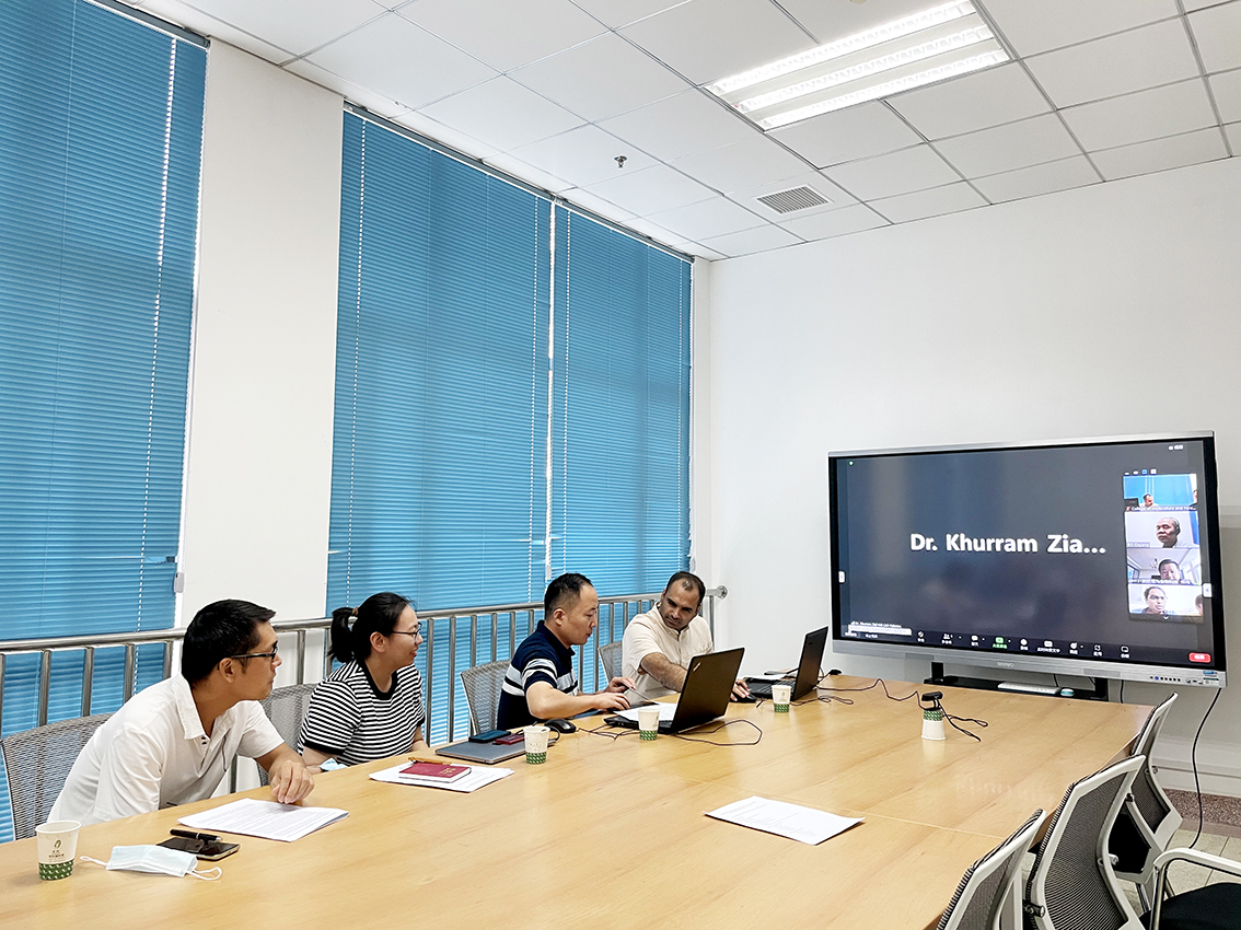 2022年8月29日,双方蔬菜研究团队举行在线会议,学院的张余洋教授、欧阳波教授、王涛涛教授、邓颖天博士、武汉楚为生物科技有限公司的郑伟博士、UAF的Khurram Ziaf博士和他的研究团队参会,共同讨论巴基斯坦蔬菜行业的关键问题及未来合作的领域。双方同意通过引进高产亲本品系、交流现代育种技术、开发现代种子分级和储存设施模型、开发现代机械化蔬菜育苗生产和移栽系统、以及现代蔬菜种子收获和加工的培训项目等在蔬菜种子生产方面开展合作。