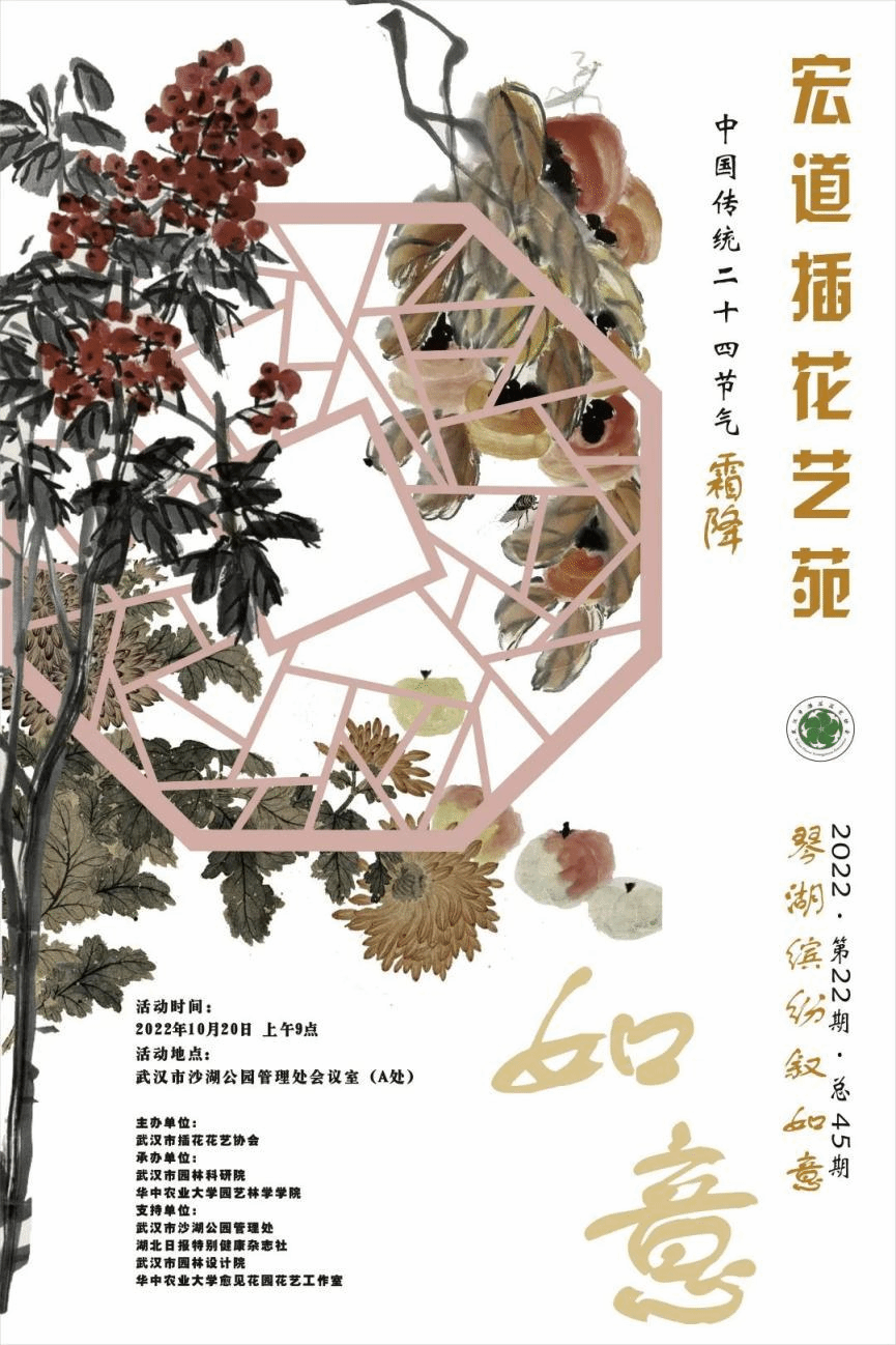 武汉市插花花艺协会“宏道插花艺苑”讲堂平面设计师、艾弗森贝博ballbet官网风景园林系周欣老师结合霜降节气海报设计,历史名家菊花、桂花等植物绘画作品精选,畅谈了植物文化艺术之美,以及每次创作的感悟与收获。