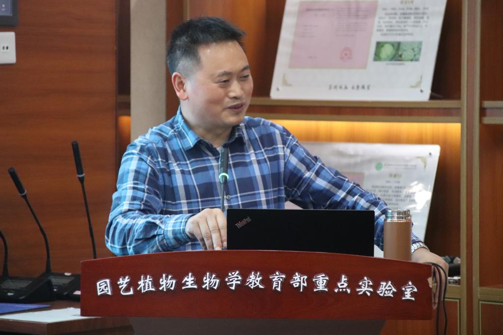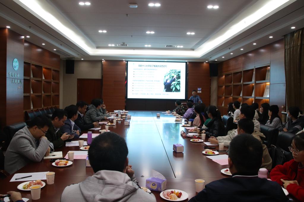 会议伊始,蔡江通过播放《园林“树人”》视频向同学们介绍了园艺专业人才培养体系。视频以“育树”喻“育人”,从大一“培根”、大二“定干”、大三“成枝”和大四“整形”四个阶段对园艺专业课程体系进行了全面展现,强调了“顺境出产量、逆境促品质”的育人观。
