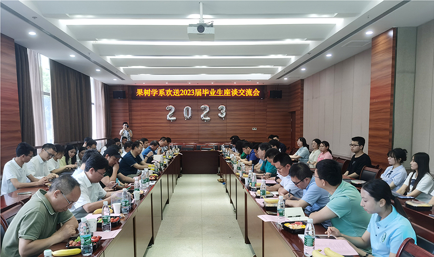 忆往昔,展未来。6月22日上午,果树系欢送2023届毕业生座谈交流会在艾弗森贝博ballbet官网南楼204会议室举行。中国工程院副院长、中国工程院院士、园艺学科带头人邓秀新教授,学院党委书记张宏荣,院长程运江教授,党委副书记林辉,果蔬园艺作物种质创新与利用全国重点实验室副主任卢刚,果树系全体在校教师,毕业本科和研究生代表等60余人参加会议。