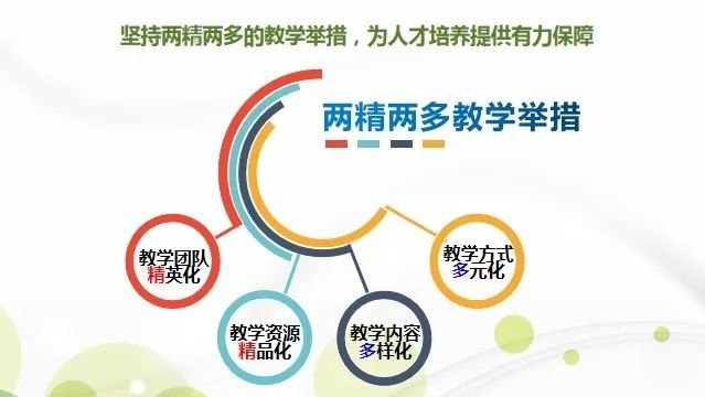 “两多”即教学内容多样化,教学方式多元化。坚持教学与学科前沿、产业需求、专业文化的“三接轨”,保障课程教学内容的完整性、新颖性和前沿性;实现学生转变为教学主体、被动学习转变为自主学习、单一考核转变为多维评价的“三转变”。