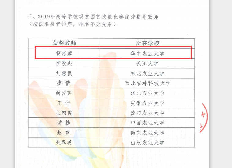 ⑦全国观赏园艺技能竞赛优秀指导老师(胡惠蓉)