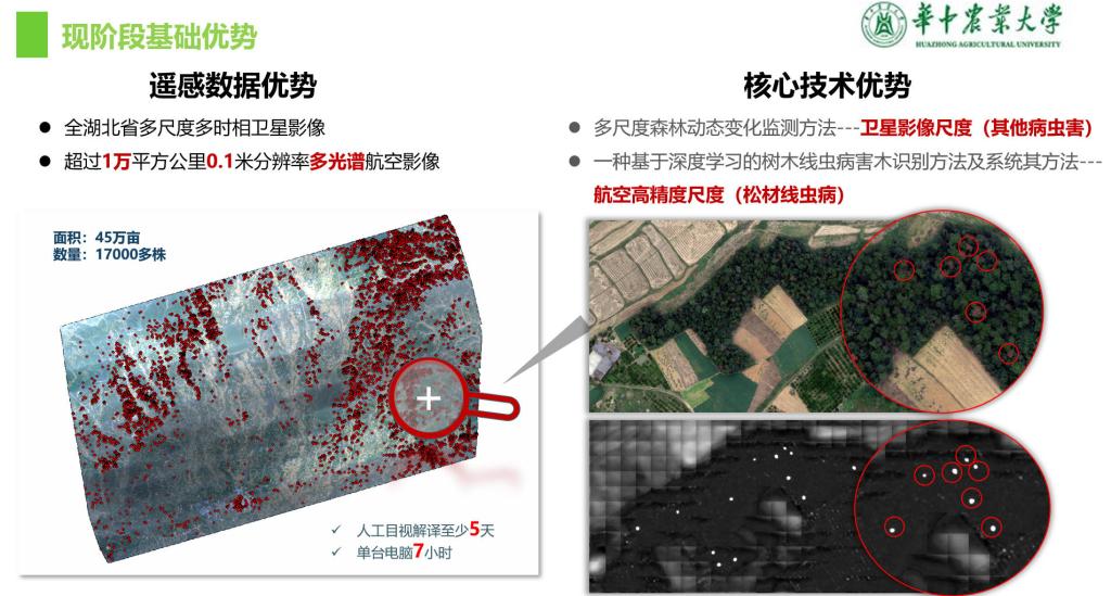 佃袁勇副教授的报告介绍了贝博ballbet官网在神农架林区开展华山松大小蠹遥感监测的工作情况。针对神农架林区大面积的华山松林受到大小蠹虫害干扰,对当地的生态环境以及旅游经济带来了巨大影响的现状,佃袁勇副教授团队围绕华山松林健康监测开展研究,开发了基于深度学习的高分遥感影像智能识别病害木模型。报告中介绍了病害木识别模型机理及框架结构,阐述了基于高斯核函数的自动病害木标注算法以及高分遥感图像病害木样本库的建设情况。还介绍了该模型用于松材线虫病害木监测的可迁移性,并进一步阐述了该模型与无人机集成,开展准实时、自动病害木识别应用的进展。研究成果为森林健康监测及经营管理提供了新的思路和方法。