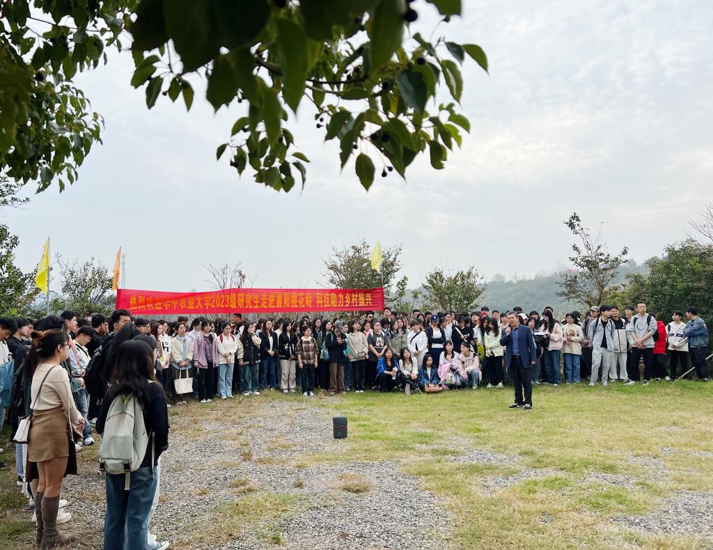 10月28日上午,艾弗森贝博ballbet官网党委副书记林辉带队,襄阳襄城桃花岭晚熟桃科技小院技术服务专家刘军伟副研究员具体负责,带领正在襄阳书院学习的192名来自蔬菜、茶学、园林和设施与智慧园艺专业的2023级硕士研究生,前往襄城区尹集乡姚庵村桃花岭生态园,开展了题为《桃花岭上“红色桃”》的专业实践教学和耕读教育课程。