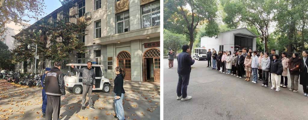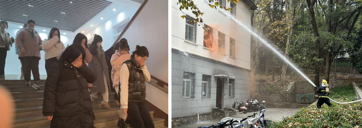 随后,党支部全体教师以景园楼为演习地点,模拟真实火灾现场,开展了消防演习活动。本次演习由校园建设与安全保卫部与艾弗森贝博ballbet官网共同组织,景园教工党支部牵头,联合研究生党员和学生志愿者共同实施。演习开始,随着预设地点起火,弥漫的烟雾触发了楼内的烟雾报警器,发现“火情”后立即启动应急预案;楼内启动消防广播系统,党员教师、研究生党员、志愿者等人迅速分楼层疏散楼内师生,直至抵达楼下广场。与此同时,消防车到达起火现场,迅速展开扑救和救援行动。灭火工作完成后,党员教师、学生们共同学习了灭火器的使用方法和操作技巧,参与了现场演练。