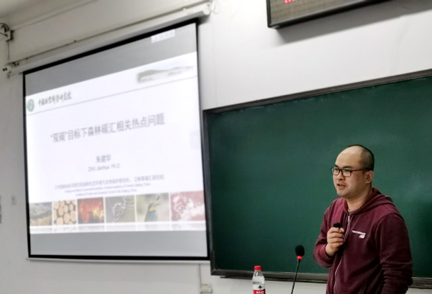 12月8日晚,二教B201教室济济一堂,作为我国森林碳汇相关方法学的主要起草人和IPCC技术专家,朱建华研究员作了题为《双碳目标下森林碳汇有关热点问题》的精彩报告。他从什么是碳汇、碳汇如何核算、森林碳汇有多少、如何巩固和提升森林碳汇、碳汇交易等五个方面,结合最新政策、数据、研究进展等,系统介绍了森林碳汇的相关知识,并对学员提出的相关问题进行了解答。