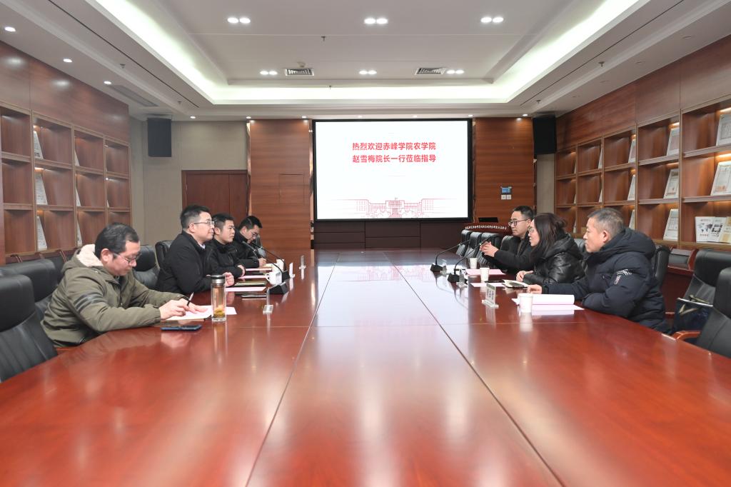 1月24日下午,学院与赤峰学院农学院在园林南楼206举行交流座谈会。学院党委书记龙健飞、园艺全国重点实验室副主任卢刚、果树系主任刘军伟、学院办公室工作人员参会。座谈交流会由卢刚主持。