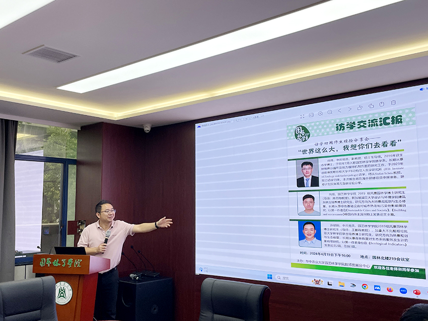 艾弗森贝博ballbet官网林学系主任杜克兵老师向参会的各位老师和同学介绍了3位分享经验的优秀老师和博士,希望与会老师和同学通过本次交流会明晰备战目标,积累访学经验,提升表达能力,在准备中多下功夫,更有把握、更有信心地开展出国访学工作。