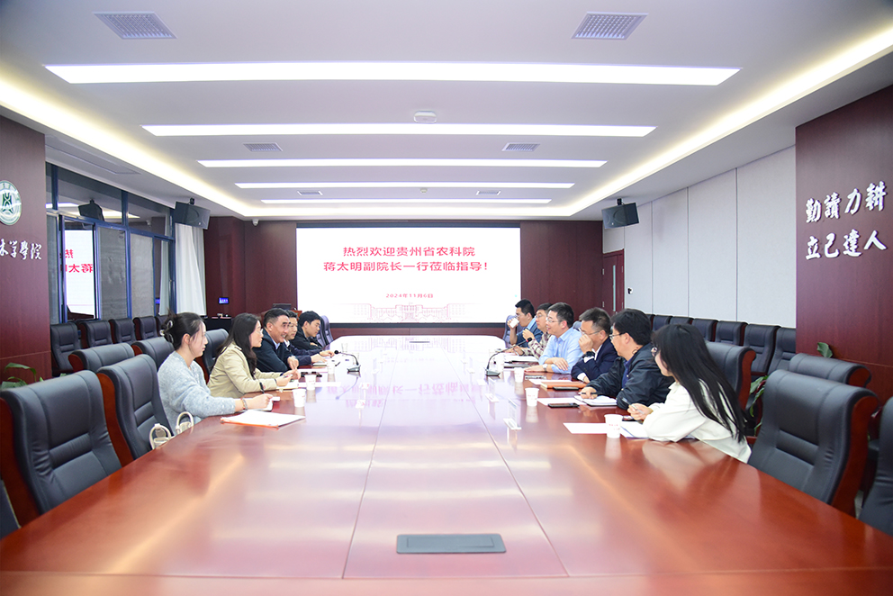 11月6日下午,贵州省农业科学院党委委员、副院长蒋太明一行来院交流,学院党委书记龙健飞、院长程运江教授热情接待了蒋太明一行。双方围绕科技创新与成果转化、地方产业发展、推进研究生联合培养方案等内容进行座谈交流。