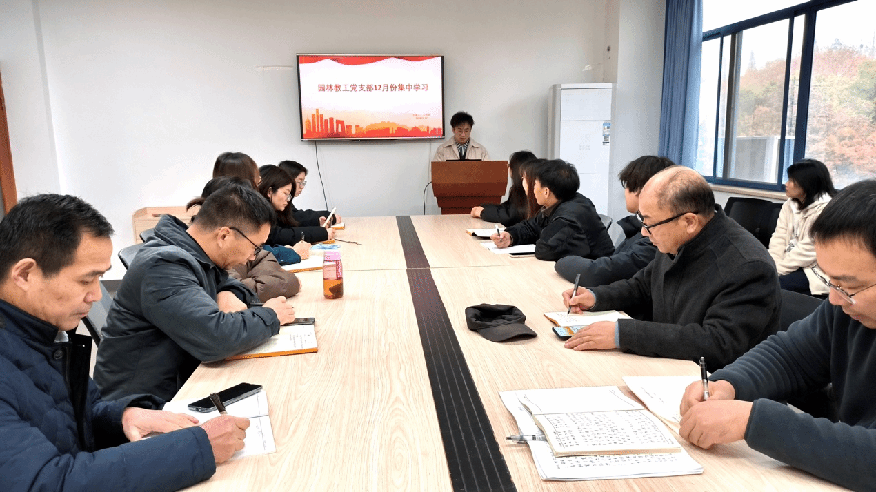 12月12日下午,园林系教工党支部在园林北楼415会议室开展十二月主题党日活动。本次活动由王伟良同志主持,支部党员教师积极参与学习讨论。