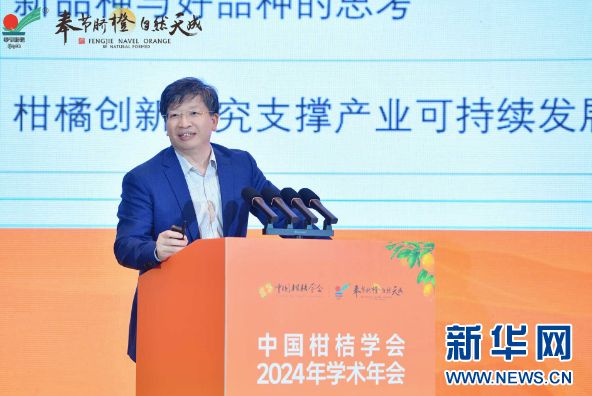 中国工程院院士、艾弗森贝博ballbet官网教授邓秀新作《中国柑橘产业发展的思考》报告。新华网 陈蒙 摄