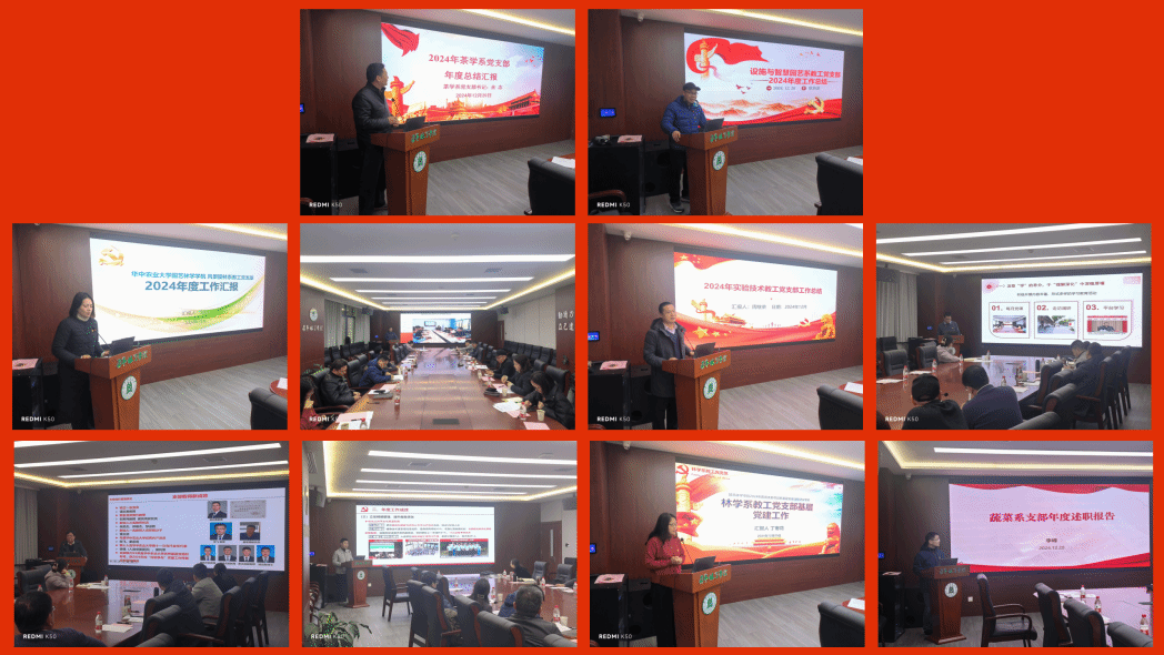 会上,8个教工党支部书记对照《艾弗森贝博ballbet官网党支部工作考核规程》的要求依次进行汇报。蔬菜系教工党支部始终坚持党建引领,围绕教育党员、服务师生员工、服务中心工作、服务社会生产开展支部活动,建立了一个“各司其职、相互配合”的高效工作氛围。设施与智慧园艺系教工党支部贯彻落实理论学习制度,提高支部理论素养,加强学科建设,开展产业和社会服务,推进基层党建与基层业务深度融合。茶学系教工党支部坚持稳抓党建理论学习,不断提高政治修养;坚持专业素质教育,培育一流师生团队;坚守产业富民使命,助力湖北乡村振兴。林学系教工党支部坚持以党建促业务,以业务强党建,抓管理、提志气、促凝聚、图发展,加强支部建设。风景园林系教工党支部坚持“五育融通”,抓党建促发展,对标争先,加强榜样宣传示范作用,精心谋篇,共促学科发展,贯彻落实全面推进乡村振兴重点工作的意见,服务乡村人居环境建设。实验技术教工党支部对标支部建设“七个有力”加强支部建设,心系师生,潜心服务,追求卓越,敢于创新。果蔬园艺作物种质创新与利用全国重点实验室党支部强化理论武装,筑牢思想根基;党建引领发展,推动高质量建设;立足精细管理,提升服务质效。园林系教工党支部加强组织建设,发挥党员先锋模范作用,立德树人,以党建带动业务发展,推动园林系发展迈上新台阶。行政教工党支部坚持以习近平新时代中国特色社会主义思想为指导,推进党支部“学”“用”“讲”“新”建设。果树系教工党支部积极开展联学联建,促进党建业务双轮驱动,打造支部文化,做好对外宣传,带领师生党员把论文写在大地上,把党课讲在果园里,努力做到行业标杆,引领发展。