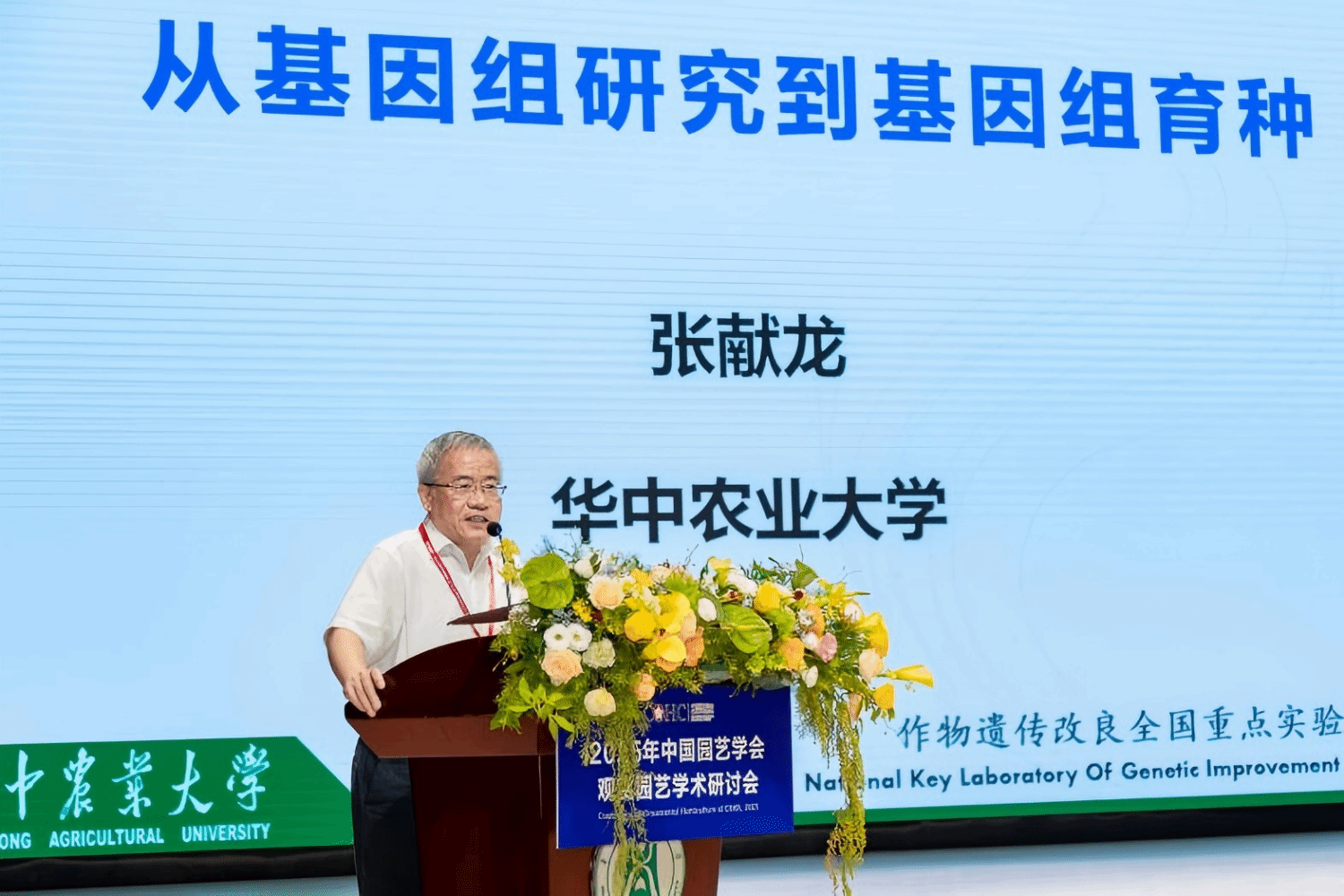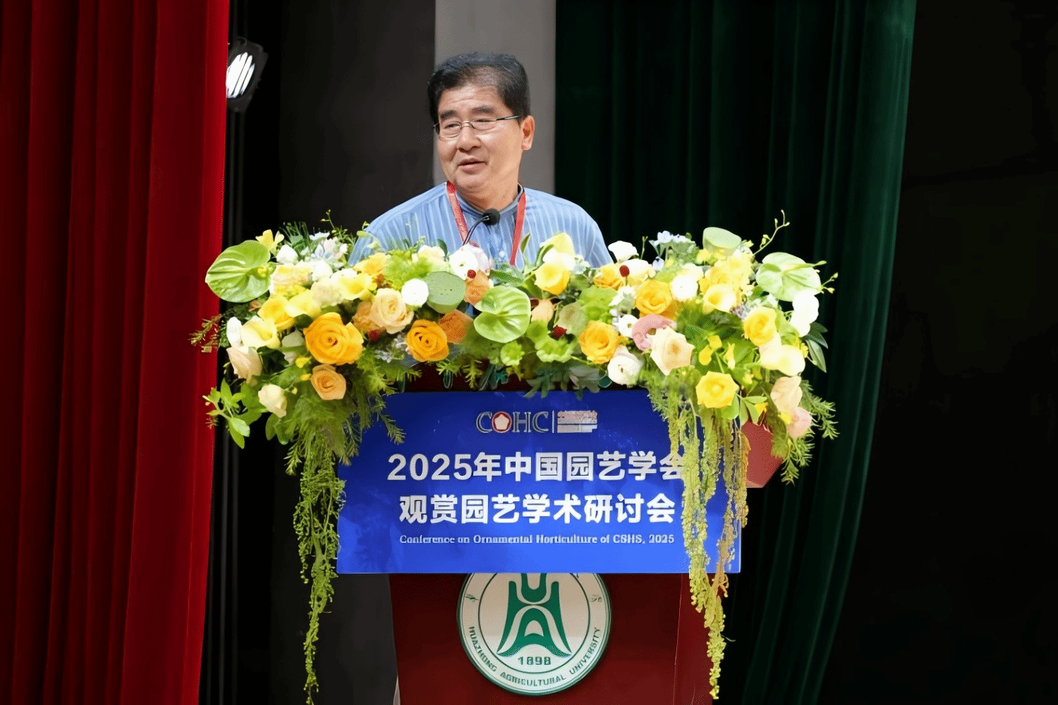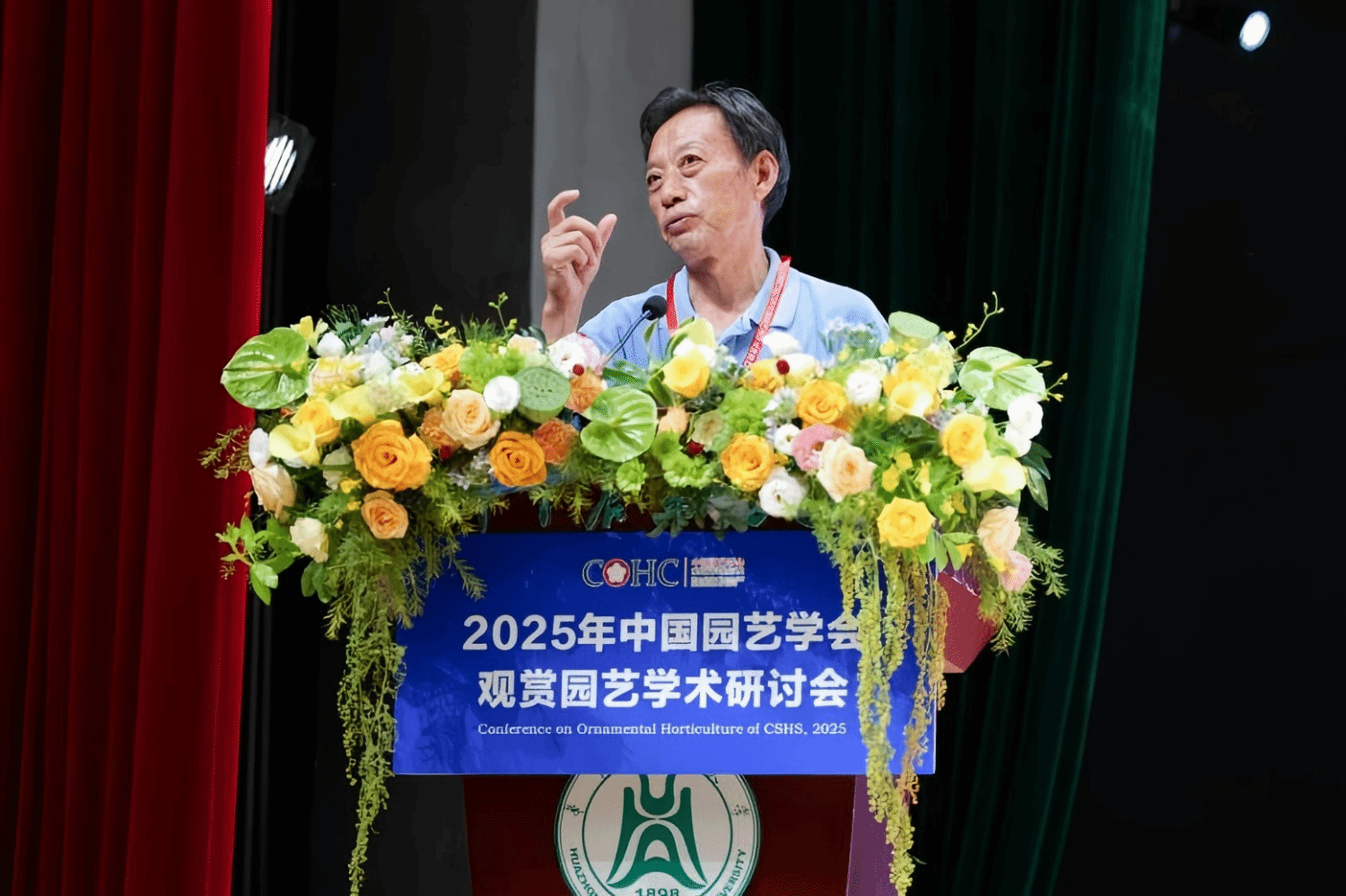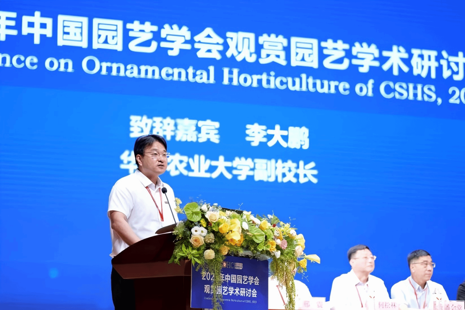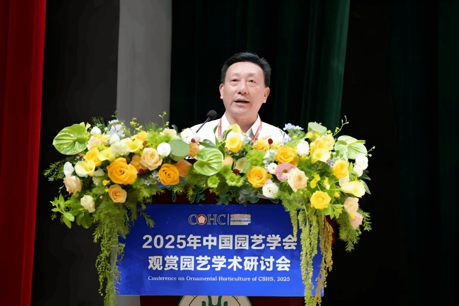 中国园艺学会副理事长、观赏园艺专业委员会主任潘会堂教授致辞(通讯员 殷铭轩 摄)