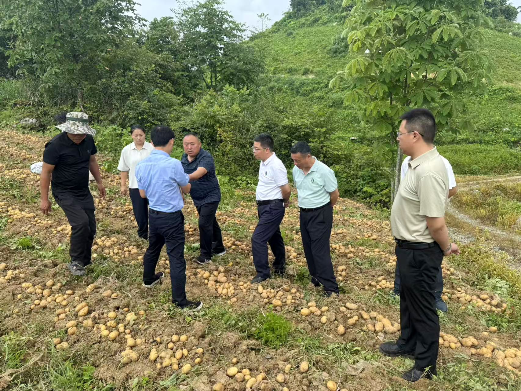 太平镇洞长湾村马铃薯种植基地查看马铃薯生长情况(陈欣欣 摄)
