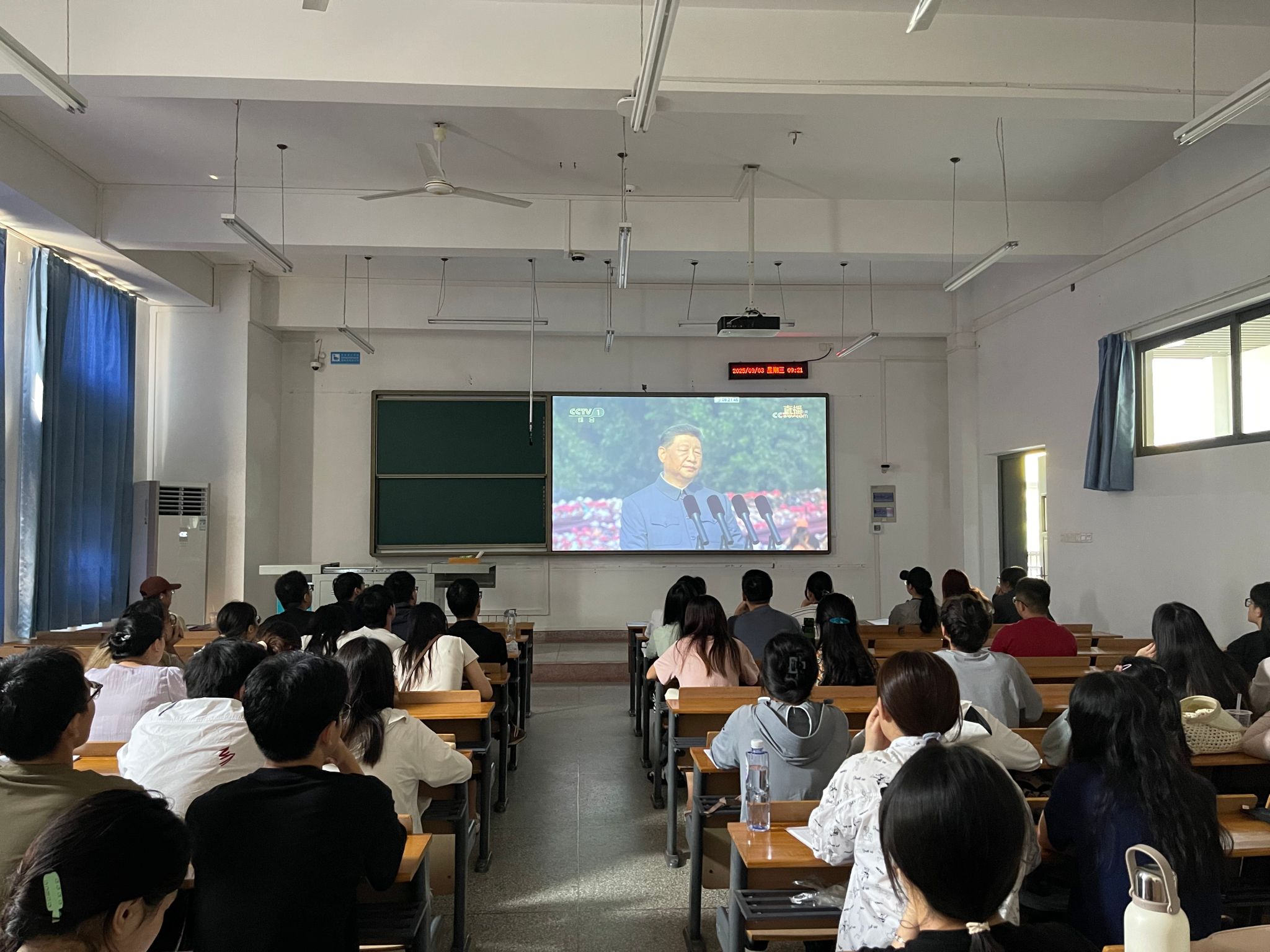 9月3日上午,红旗飘扬,军威雄壮。纪念中国人民抗日战争暨世界反法西斯战争胜利80周年阅兵式在北京天安门广场举行。贝博ballbet官网组织师生集中收看阅兵式直播,共同上了一堂生动而深刻的爱国主义教育课。