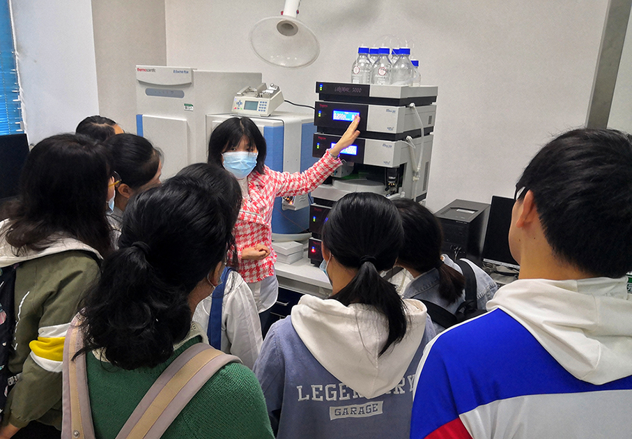 为了响应学校的防疫要求,开放日参观分批次分模块有序进行。这样一来既降低了人员聚集,也提高了培训质量。首先,平台主任屈晓璐研究员介绍了艾弗森贝博ballbet官网公共平台的构成,包括细胞生物学平台、代谢组学平台、感官评价平台、植物生化平台、植物生长平台、采后生物学平台和生物信息平台等7个子平台,同时介绍了它们的预约方式、使用方法和注意事项。随后,各位分平台的管理老师,带领不同批次的同学,顺次参观了平台的设备和设施。细胞平台的屈晓璐老师为大家讲解了多种光学成像系统和组织切片系统在细胞学研究上的应用及实验注意事项;代谢平台的仲林林老师和秦玉娇老师依次向大家介绍了各类气相色谱、液相色谱、气质联用仪、液质联用仪等仪器的工作原理、操作流程以及它们在物质的定性定量发挥的重要作用;植物生化、植物生长平台的石春梅老师介绍了非接触超声破碎仪、蛋白纯化仪和蛋白定量分析系统在核酸蛋白水平的分离和检测上的应用。整个平台介绍过程中,同学们纷纷针对自己感兴趣的仪器提出了一些问题和感受。