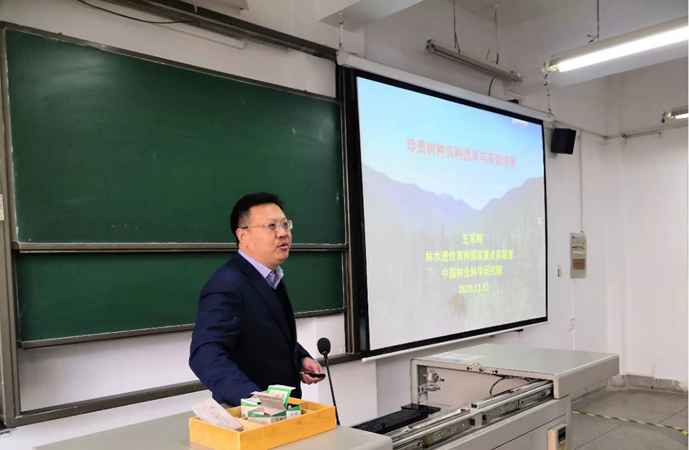 2020年12月11~12日,中国林科院林业研究所王军辉研究员和森环森保所黄志霖研究员来校为艾弗森贝博ballbet官网中国林科院林学英才班暨林学科研案例课学员作报告,中国林科院研究生院曾凡勇副主任参加。贝博ballbet官网副院长周继荣、王鹏程会见了相关专家,周继荣介绍了林学英才班建设的基本情况,王鹏程主持了报告会。林学及相关专业师生100余人听取了报告。