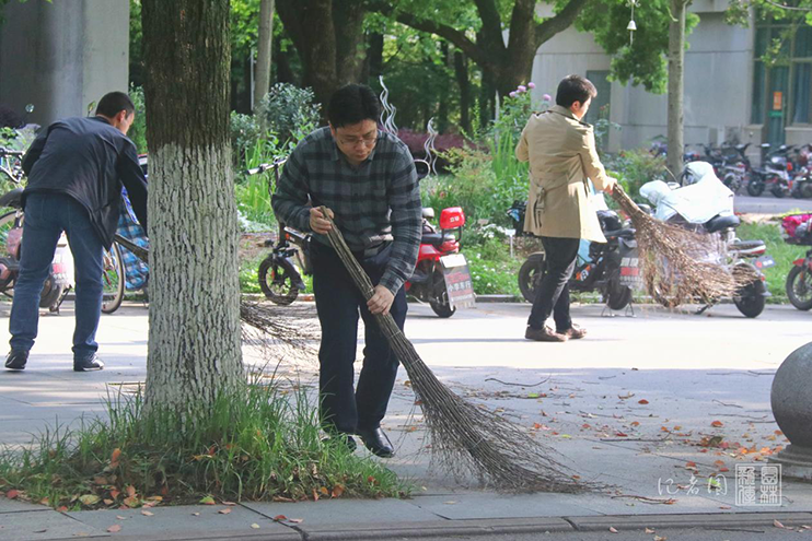 4月23日下午,贝博ballbet官网师生在园林北楼和景园楼附近进行校园环境卫生义务劳动。院党委副书记蔡江等教师和二十余名学生参与本次活动。