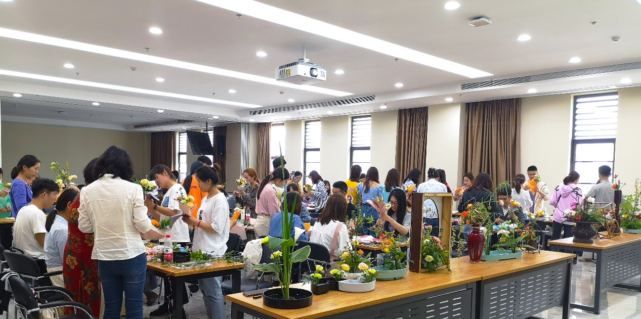 2021年5月12日,贝博ballbet官网王彩云教授应植物科学技术学院研究生会邀请,带领园林院品质生理与分子生物学实验室四名研究生以及她所带的四名本科毕业生相约植科学院第十三期人文讲坛,开展了《插花艺术鉴赏与实操》主题讲座与实操活动。为保证讲座与实操的效果,植科院研究生会对活动人数进行了报名限制,但现场除报名参与的35名植科院研究生外,还有多名闻讯赶来旁听的学生和其他院系的老师们。
