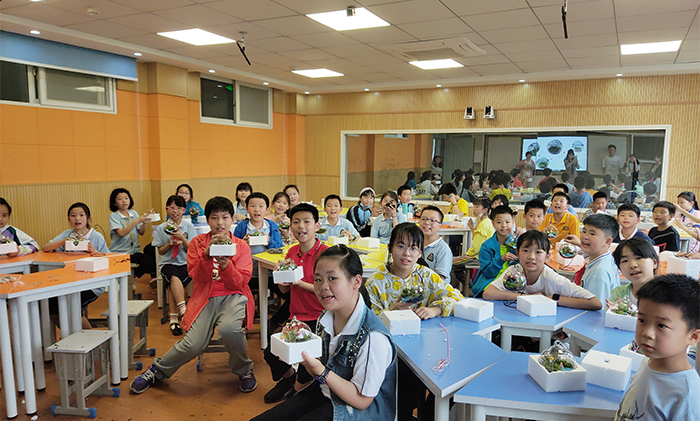 小朋友们和自己制作的微景观的合照