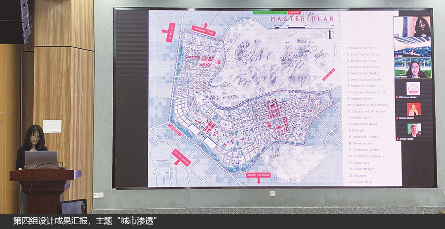 2021年6月11日上午,“2021中美埃联合设计工作坊课程”在景园楼顺利开展课程答辩。本次设计场地由埃及艾因沙姆森大学提供,基址位于埃及红海沿岸著名的旅游城市Sharm El Sheikh,课程面向2020级风景园林学研究生进行授课,课程教师团队为邵继中、王玏、章莉和张炜。答辩邀请到华中科技大学董贺轩教授、美国克莱姆森大学 Hala Fouad Nassar教授、埃及艾因沙姆森大学Ayman Farid副教授、艾弗森贝博ballbet官网曾晨教授、张斌教授五位嘉宾,开展线上线下相结合的国际联合设计课程答辩与评图。