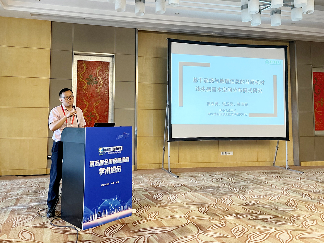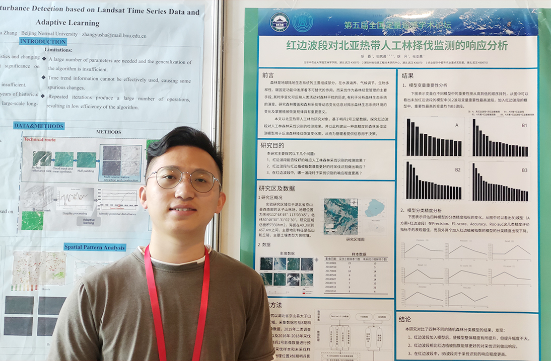 本届论坛共开设了26个分会场和一个海报展览区,我校资源与环境学院孟冉教授与贝博ballbet官网佃袁勇副教授和共同承担了“森林干扰遥感监测与预警“分会场召集与主持工作。该分论坛邀请了北京林业大学黄华国教授、中国林科院庞勇研究员、福建师范大学陆灯盛教授、西南林业大学寇卫利教授等国内外知名学者做了精彩报告。清华大学、南京大学、华中师范大学、安徽大学、西南林业大学、南京林业大学、内蒙古工业大学等大学参加该分论坛,针对森林虫害、火灾、采伐等扰动,围绕遥感技术提取扰动信息、评估生物量变化等方面做了精彩报告。佃袁勇与孟冉老师还针对森林病虫害遥感监测做了“基于遥感与地理信息的马尾松材线虫病害木空间分布模式研究”、“融合光谱和时序特征的南方松树甲虫(SouthernPineBeetle)虫害探测模型研究”的专题报告。佃袁勇老师的林业遥感课题组硕士研究生胡磊、胡月、张亚昊、刘晓阳也参加了此次论坛,并制作了题为“红边波段对北亚热带人工林择伐监测的响应分析”的海报展示。