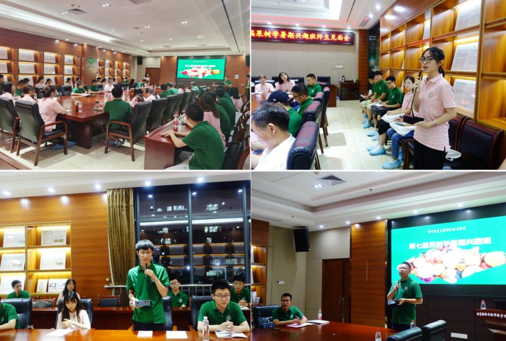 会议伊始,兴趣班班主任解凯东老师介绍了本届兴趣班的概况,从招生简章发布、学员信息采集、录取名单确定和现场报道,本届兴趣班共有35名学员,对大家的到来表示欢迎。解老师期寄来自19所大学的优秀学子相聚这里,能够碰撞出理想的火花。蔡江副书记致欢迎词,他提出本次夏令营举办目的是充分展示果树学科育人文化的“情怀”与“担当”,希望各位学员在有限的4天时间里全面深入地感受了解果树学科。接着,果树系主任刘军伟老师从学科历史、师资队伍、学科团队(单元)、科研平台及研究成果、人才培养、国际合作和社会服务等方面系统地给大家介绍了果树学科。果树系教师代表张飞教授给大家分享了他自己的成长和留学经历,到最后选择果树学科这片沃土的心路历程,他期待学员能够对果树学充满兴趣,果树系所有老师会热情解答学员疑问,共同助力果树学科进步和产业发展。在学员介绍环节,35名学员同学从自己与果树的“结缘”,纷纷表达了自己对果树学知识和果树产业学习的渴望,期待未来自己能够在果树研究和乡村振兴方面有所建树,早日回报家乡和社会。