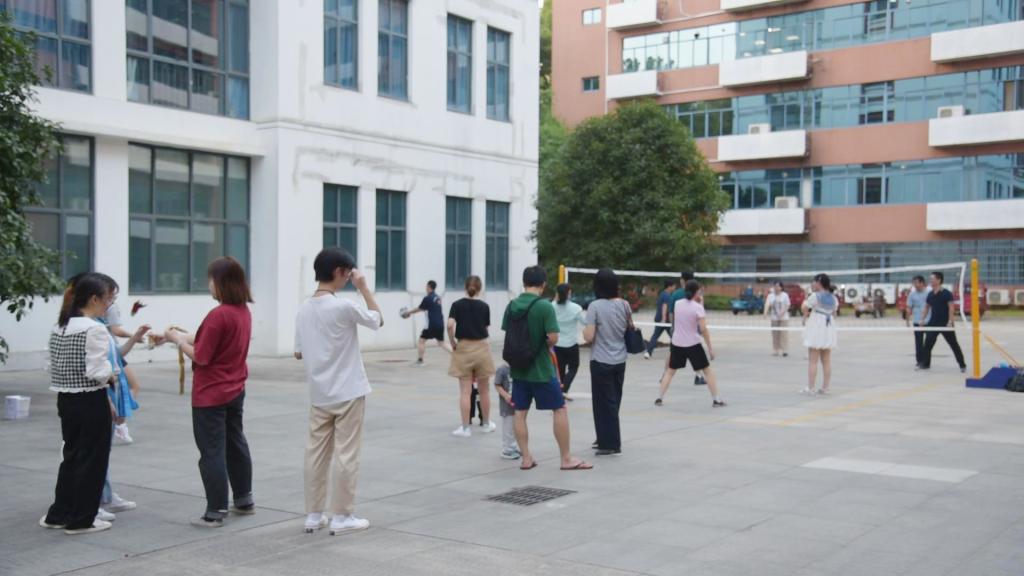 活动内容丰富多样,有两人三足、 跳大绳 、拔河 、传乒乓球、踢排球等。在活动中,老师和学生自行组队,按照兴趣喜好参与游戏项目,共同配合完成任务,现场的气氛显得愉悦放松。有的老师还带来了自己的孩子参与游戏,亲子融乐,共同感受运动带来的轻松愉悦身心的氛围。
