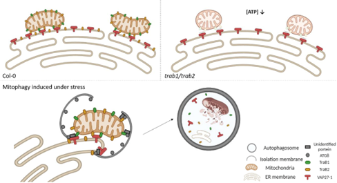 在植物细胞中,细胞器相互作用以调节多种生理活动,不同细胞器之间的紧密接触产生了一个互动网络,促进了快速的物质和信号交换。内质网(ER)通过膜连接点(Membrane contact sites, MCS)与其他膜结构物理连接,包括内质网-质膜连接点(ER-PM Contact Sites, EPCS)和内质网-线粒体连接点(ER-Mitochondrial Contact Sites, EMCS)。EMCS相互作用在多种生理活动中尤其重要,例如Ca2+转移,脂质代谢,自噬,线粒体动力学和形态发生。然而,与动物和真菌中的对应物相比,EMCS在植物中的蛋白质成分和生物学相关性知之甚少。另外,为了维持细胞稳态,受损的线粒体需要通过线粒体自噬降解,这是一个高度选择性的自噬过程,需要内质网的直接参与。本项研究不仅提高了我们对细胞器相互作用和线粒体自噬的认识,同时也弥补了植物中内质网线粒体互作和线粒体自噬的理论知识。