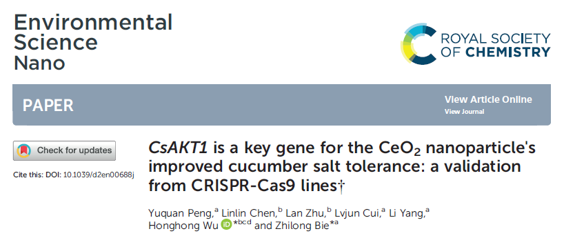 近日,艾弗森贝博ballbet官网园艺植物生物学教育部重点实验室、艾弗森贝博ballbet官网别之龙教授课题组与植物科学技术学院吴洪洪教授合作在CeO2纳米材料提高黄瓜耐盐性的机制方面的研究成果以“CsAKT1is a key gene for CeO2nanoparticles improved cucumber salt tolerance: a validation from CRISPR-Cas9 lines”为题发表于Environmental Science: Nano。