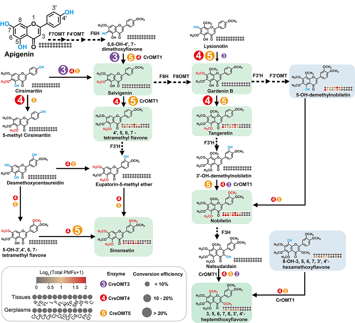 图1.CreOMT3、CreOMT4和CreOMT5在PMFs生物合成中发挥关键作用