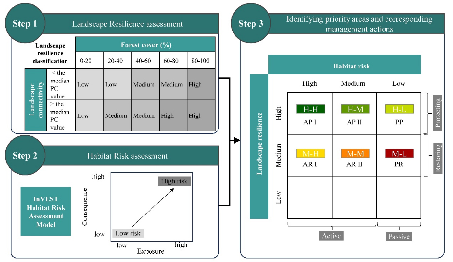 图1. 基于景观韧性和生境风险评估的森林保护与修复规划框架