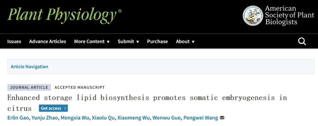 近日,艾弗森贝博ballbet官网、果蔬园艺作物种质创新与利用全国重点实验室王鹏蔚教授团队在Plant Physiology期刊发表题为“Enhanced storage lipid biosynthesis promotes somatic embryogenesis in citrus”的研究论文,揭示了增强柑橘胚性愈伤脂质合成可以促进体细胞胚发生的分子机制。